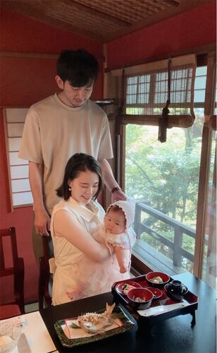 小さかったもぷくぷく大きくなり もうあっという間にハーフバースデーを迎えたのですが 100日祝いの記録を お食い初めは 家族みんなでうかいさんへ✨ 結婚の時の顔合わせもここでしたし 中おばあちゃんの傘寿のお祝いで行った時に のお食い初めでまた来る!と…